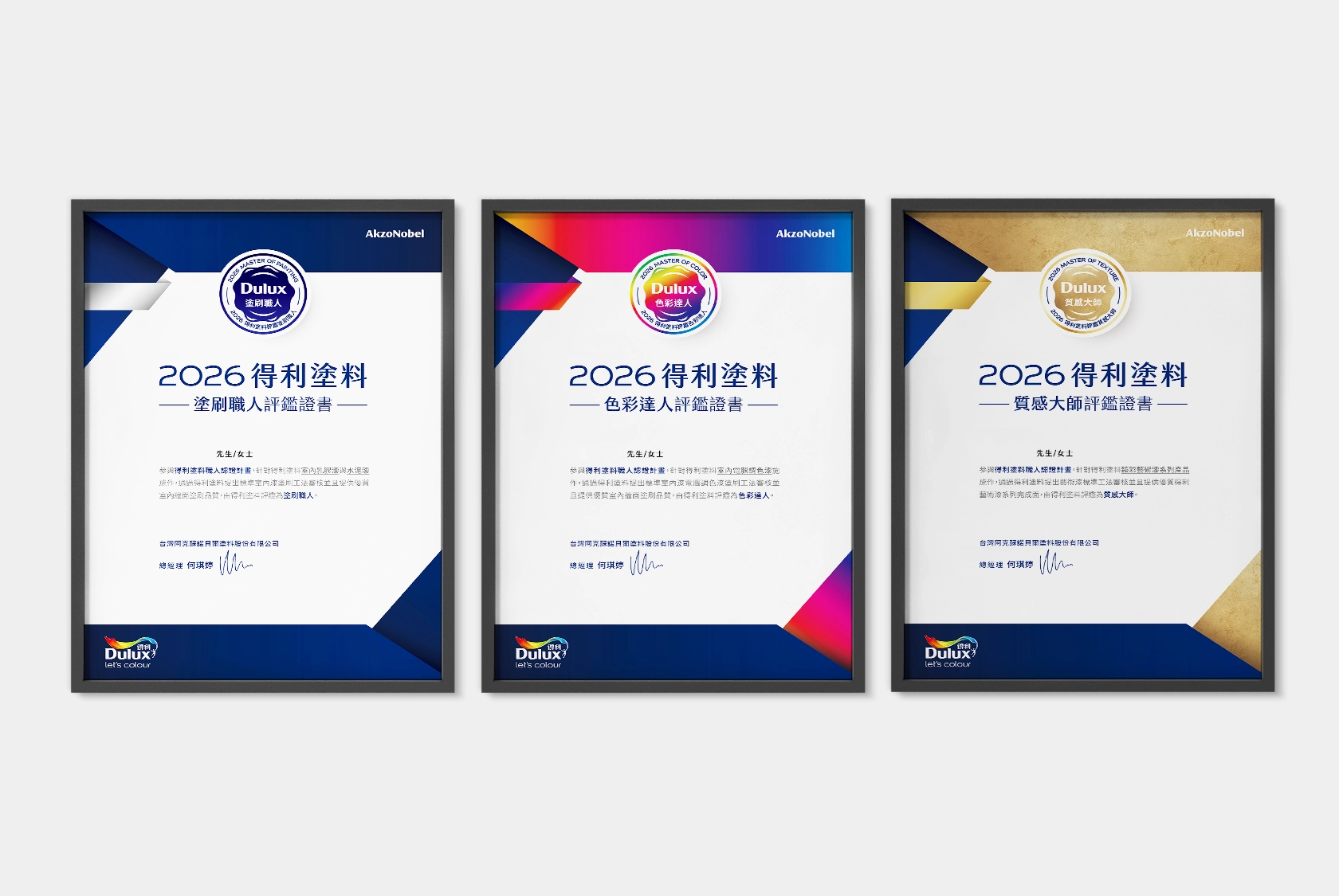 Dulux 得利塗料品牌,近年在台灣市場主打「色彩應用」以及「特殊工法及漆料」的操作結合,推出由官方品牌認證的「油漆師傅、職人、專家」,透過完工成品來審查塗刷工法,以及特效的呈現,設定出【色彩達人、塗刷達人、質感達人】三個專業身份,有品牌的授權以及認證,將 Dulux 得利塗料更加多元的推廣出去,結合建案、室內裝潢、自宅DIY或空間場域的美化,都更能有品質保證。